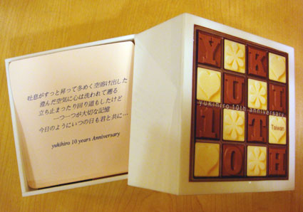 套上硬殼透明塑膠外盒後,繫上緞帶,便完成了送給yukki的十週年賀禮。